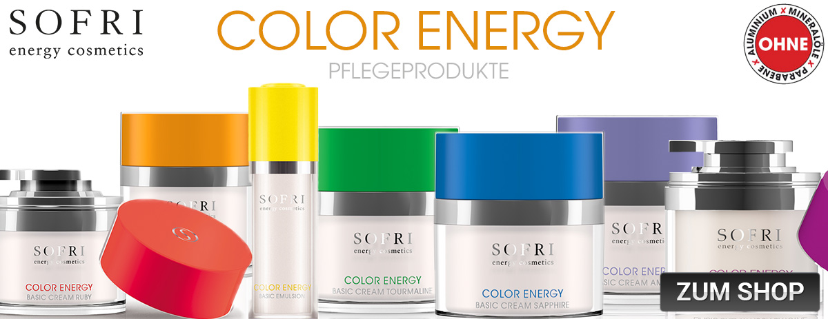 In den Rezepturen der SOFRI Produkte nutzen wir bewusst das Energiepotential von Pflanzen, Edelsteinen und Farben und kreieren so individuell aufeinander abgestimmte Synergien. So steigern die Produkte der Color Energy Linie auf Basis der Chakren-Lehre mit Farb-Energie nachweislich das Energieniveau.